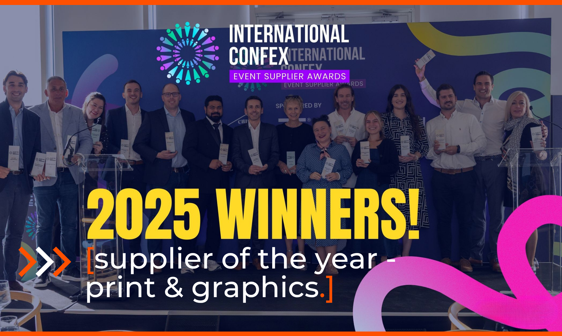 We’ve done it again! We've won Best Supplier – Print & Graphics at the Event Supplier Awards. We’re feeling a bit proud, and more than a little bit excited to let you know we’ve been named Best Supplier – Print & Graphics at the International Confex Event Supplier Awards. It’s a huge old moment for the team and one we’re 100% thrilled about.